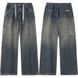 Men's Clothing & Archer0603 & Japanese Style Trendy Cargo Pants Straight Leg Wide Leg Jeans Men's Logging Pants Patchwork Drawstring Style Pants