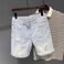 Men's Clothing Big Hole Five Point Pants Trendy Washed Light Blue Denim Shorts