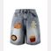 Men's Clothing Creative Fries Towel Embroidered Denim Shorts Men's Summer Retro Wide Leg Straight Loose Trendy Brand Seven Point Pants