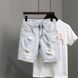 Men's Clothing Denim Shorts Summer Thin Loose Trendy Breeches Ripped Casual Five Point Mid Length Pants