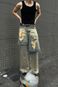 Men's Clothing Double Layer Two Piece Yellow Mud Distressed Dirty Wasteland Paris High End Wide Leg Jeans