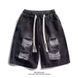 Men's Clothing Drawstring Elastic Waist Ripped Denim Shorts Street Fashion Wide Leg Straight Casual Five Point Shorts