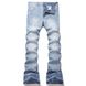 Elevate your streetwear game with these stylish blue flared jeans, designed for the modern youth who crave individuality. The eye-catching rhinestone detailing adds a touch of shine, making these jeans a standout piece in any wardrobe.