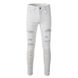 Men's Clothing Foreign Trade High Street Hole Patch Diamond Stretch White Jeans Men's Slim Pants Straight Denim Men's Trousers 625