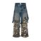 Men's Clothing Heavy Hip Hop Stitching Two Piece Distressed Camouflage Workwear Jeans Loose Casual Wide Leg Trousers
