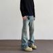 Men's Clothing High Street Cleanfit Cat Whisker Pattern Distressed Jeans Straight Flared Vibe Long Pants