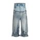 Men's Clothing High Street Design Double Layer Stitching Baggy Jeans Loose Wide Leg Straight Denim Trousers Men