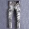 Men's Clothing High Street Fashion Retro Men's Jeans Distressed Gray Washed Ripped Patches Slightly Stretch Slim Fit Skinny Jeans Men's Trendy
