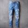 Men's Clothing High Street Fashion Ripped Men's Jeans Blue Patchwork Street Trend Elastic Slim Fit Hip Hop Men's Trendy Pants