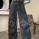 Men's Clothing High Street Heavy Washed Jeans Men's Straight Loose Velcro Multi Pocket Wide Leg Overalls Trend