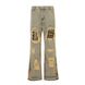 Men's Clothing High Street Jeans Cleanfit Retro Washed Distressed Camouflage Stitching Design Flared Trousers