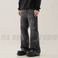 Men's Clothing High Street Lightning Pattern Washed Black And Gray Jeans Straight Slim Cleanfit Pants