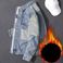 Men's Clothing Loose Workwear Plus Velvet Top Denim Jacket Korean Style Loose Fit Workwear Fleece Lined Casual Coat With Patchwork & Color Blocking