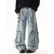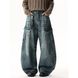 Men's Clothing Men's Distressed Cargo Jeans - Oversized Streetwear Denim Pants With Multi-Pockets & Patchwork Design (Blue/Vintage Blue)
