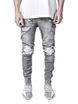 Ins Trendy men's stretch jeans Slim-fit pants motorcycle holes black jeans men