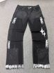 Men's Clothing Menswear Trendy Patchwork Distressed Washed Denim Cargo Pants With Hand Painted Finish And Double Star Logo.