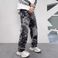 Men's Clothing Mosaic print design jeans men's American retro washed loose casual straight floor length wide leg trousers