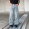 Men's Clothing New Fashion Brand Loose Straight Black American High Street Ins Style Jeans One Piece Drop Shipping Foreign Trade