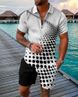 Men's Clothing new style men's fashion casual suit 3D printed zipper short sleeve polo shirt shorts 2-piece set