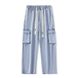 Men's Clothing Overalls Men's Spring And Summer New Loose Floor Mopping Overalls Vibe High Street Ash Jeans