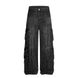 Men's Clothing Punk Washed Denim Multi Pocket Work Trousers Design Sense Men's Wear Vibe High Street Trend Niche Wide Leg Straight Pants