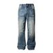 Men's Clothing Retro Dark Blue Lightning Cracked Jeans Loose Wide Leg Pants Washed Straight Flared Pants