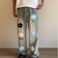 Men's Clothing Retro Tie Dye Towel Embroidery Flared Jeans Niche Design Loose Straight Vibe Trousers