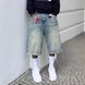 Men's Clothing Retro Washed High Street Denim Shorts For Men And Women Straight Wide Leg Distressed Loose Casual Versatile Seven Points