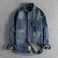 Men's Clothing Sleeve Patch Stitching Heavy Washed Distressed Retro Denim Shirt Loose Stiff Trendy Youth Shirt