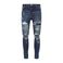 Men's Clothing Street Fashion Jeans Blue Vintage Skinny Ripped Leather Patch Jeans