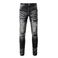 Men's Clothing Street Fashion Jeans Retro Black Grey Ripped Slim Fit Leather Denim Pants
