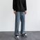 Men's Clothing style drawstring light color jeans men's elastic waist loose straight floor length pants wide leg casual long pants men
