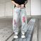 Men's Clothing Summer New Trendy Brand American Pink Ripped Jeans Men's Loose Straight Men's Wide Leg Casual Trousers Thin Style