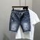 Men's Clothing Summer Trendy Brand Internet Celebrity Ripped Denim Shorts Men's Korean Style Trendy Slim Fit Blue Trendy Five Point Shorts
