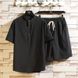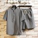 Men's Clothing two-piece suit stand-up collar retro short-sleeved suit casual solid color cotton and linen two-piece suit