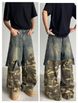 Men's Clothing Unisex High-Street Camo Cargo Pants With Contrast Panels & Multi-Pockets - Straight Leg Denim Jeans For Men & Women