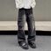 Men's Clothing Unisex Vintage Washed Jeans - Streetwear Straight Leg Denim Pants With Distressed Details, Retro High Waist Boyfriend Fit (Black, S-XL)