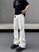 Men's Clothing Vintage-Inspired High-Waisted Flared Jeans For Men & Women – Classic White & Black, Stretch-Free Cotton Denim, Retro Streetwear Style