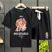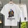 Men's Clothing waffle polo shirt short sleeved T shirt set summer loose clothes tops and pants suits for men