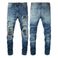 Men's Clothing Washed Cat Whisker Wrinkled Hole Patchwork Leather Elastic Slim Fit Skinny Jeans