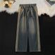 Men's Clothing Washed Distressed Vintage Blue Jeans High Street Striped Loose Straight Wide Leg Pants