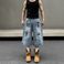 Men's Clothing Washed Insect Graffiti Denim Shorts Loose Straight Casual Cropped Pants