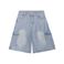 Men's Clothing Washed Light Blue Large Pocket Denim Mid Length Pants Loose Slim Wide Leg Cropped Pants