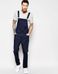 Men's Denim White Bib Pants Slim Fit Trousers Bib Pants