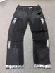 Men's Distressed Denim Cargo Pants - Black Triangle Patchwork With Hand-Painted Details, Streetwear Workwear