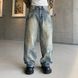 Men's Distressed Denim Jeans With Rhinestone Chain Pendant – High Street Vintage-Inspired Splatter Wash & Relaxed Fit