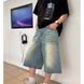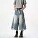 Tired of boring denim shorts that blend into the crowd? These distressed 7/5-length jeans are crafted to make a statement. With bold lightning wash patterns and rugged rivet accents, they’re designed for those who crave authenticity and urban attitude.