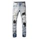 Own the concrete jungle with these edgy distressed jeans, where graffiti lettering meets rugged patchwork. The intentionally frayed edges and contrast fabric patches scream urban rebellion, while the slim tapered fit keeps you looking sharp. Made from breathable stretch denim, they’re built for all-day adventures—from skate parks to late-night hangs.