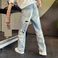 These distressed straight-leg jeans are your ticket to effortless cool. With intentional rips and a relaxed fit, they blend vintage vibes with modern streetwear edge – perfect for guys who want to stand out without trying too hard.