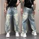 "Men's Distressed Straight Leg Jeans – Vintage Washed Blue Denim With Ripped Details, Trendy Instagram Style (Sizes M-XXXL)"